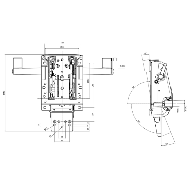 Features: • With seat board slider 50mm . • Height adjustment handle. • 5 position locking for tilt angles 0 ~22°. • Tension regulation for tilt .
